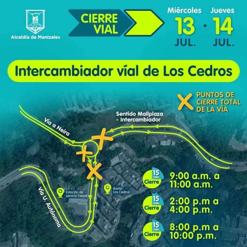 «Este miércoles y jueves tendremos cierres viales en el Intercambiador Vial de Los Cedros para dar paso a los ensayos sismicidad.