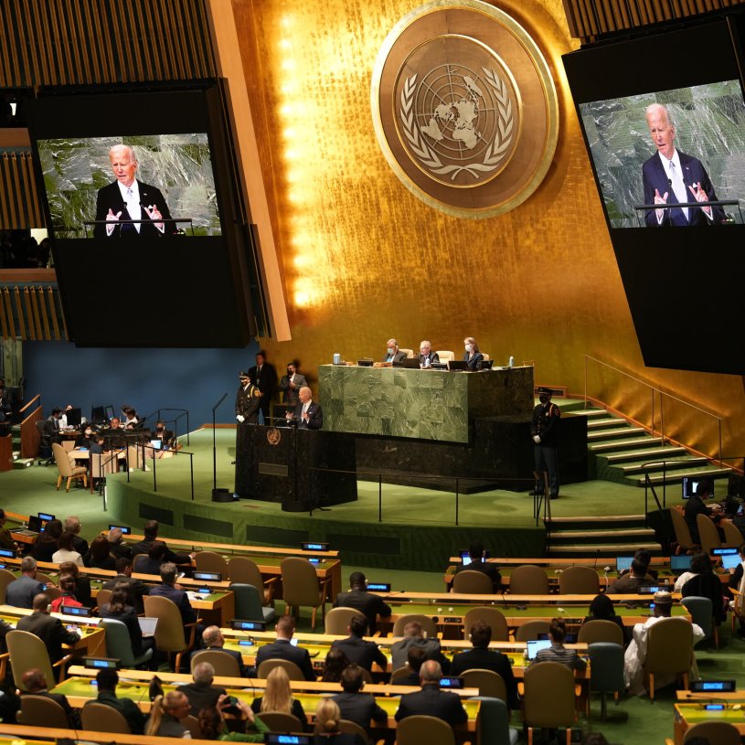 El presidente Biden abrió su discurso acusando a Rusia de violar la carta de la ONU: “Hablemos claramente. Un miembro permanente del Consejo de Seguridad de las Naciones Unidas invadió a su vecino”.