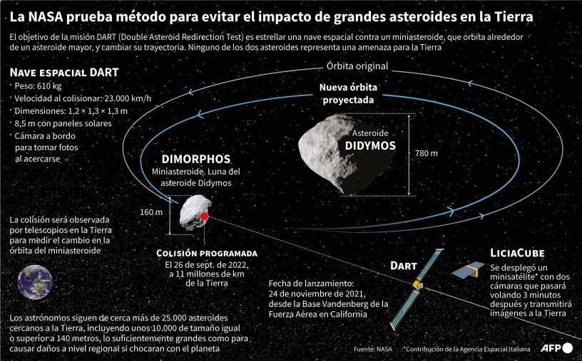 DART es una nave espacial diseñada para impactar un asteroide como prueba de tecnología. El asteroide objetivo de DART NO es una amenaza para la Tierra. Este sistema de asteroides es un campo de pruebas perfecto para ver si estrellar intencionalmente una nave espacial contra un asteroide es una forma efectiva de cambiar su curso, en caso de que se descubra un asteroide que amenaza la Tierra en el futuro.