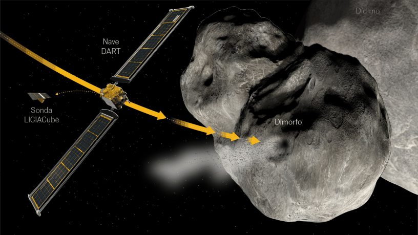 El satélite Light Italian CubeSat for Imaging of Asteroids de la Agencia Espacial Italiana, o LICIACube, volará por Dimorphos para capturar imágenes y videos de la columna de impacto a medida que sale del asteroide y tal vez incluso espiar el cráter que podría dejar atrás. El minisatélite también vislumbrará el hemisferio opuesto de Dimorphos, que DART no podrá ver antes de que sea borrado.