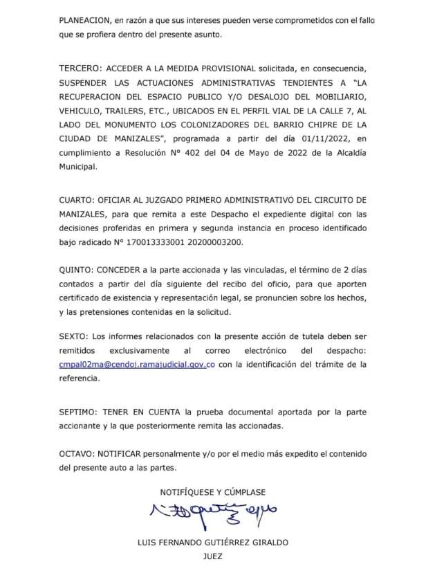 JUDICIAL, LOCAL Suspendido desalojo de Trailers en el mirador de Chipre Fecha: 28 de octubre de 2022Autor/a: 630 CAFÉ 0 Comentarios Mirador de Chipre seguirá por ahora con los puestos de comidas, según medida provisional del Juzgado Segundo Civil Municipal de Manizales. Comparte esto: Haz clic para compartir en WhatsApp (Se abre en una ventana nueva) WhatsApp Haz clic para compartir en Facebook (Se abre en una ventana nueva) Facebook Haz clic para compartir en X (Se abre en una ventana nueva) X Haz clic para enviar un enlace por correo electrónico a un amigo (Se abre en una ventana nueva) Correo electrónico Haz clic para compartir en Telegram (Se abre en una ventana nueva) Telegram Me gusta Cargando... Relacionado