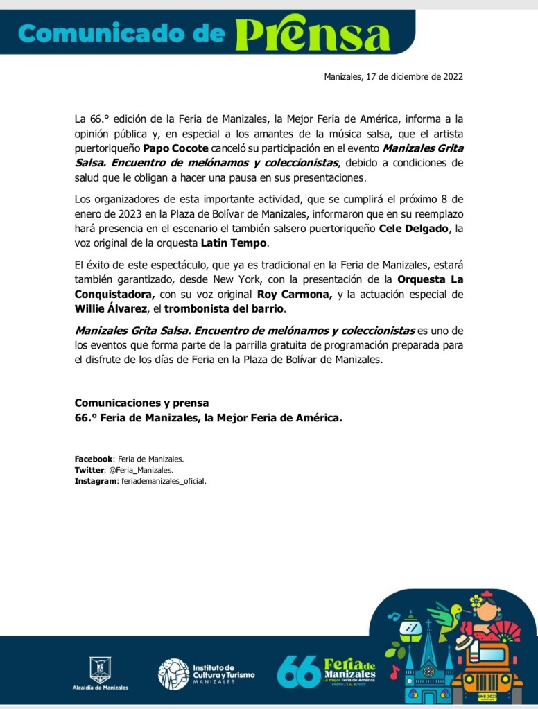 Se trata de una de las actividades más esperadas por fanáticos y coleccionistas del género; no obstante, tendrá remplazo por el artista Cele Delgado. Ver comunicado.