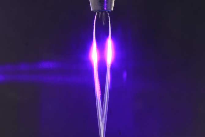 Buchmann, Hoberg y Novellia han probado su nuevo enfoque de diseño de circuitos basados en agua. Al agua en la que los investigadores disolvieron una sal (iones de yoduro) se la hace pasar a través de una boquilla especial, hecha a medida, de modo que fluye como un chorro aplanado con un grosor de solo unos micrómetros.