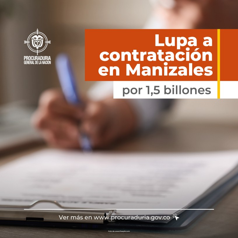 La Procuraduría General de la Nación-PGN-, en ejercicio de su función preventiva, analizó la contratación del Municipio de Manizales entre enero del 2020 y septiembre del 2022, la cual asciende a 1,5 billones de pesos, encontrando varias circunstancias que pueden implicar riesgos en la gestión contractual del municipio.