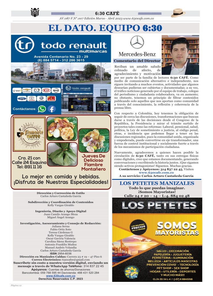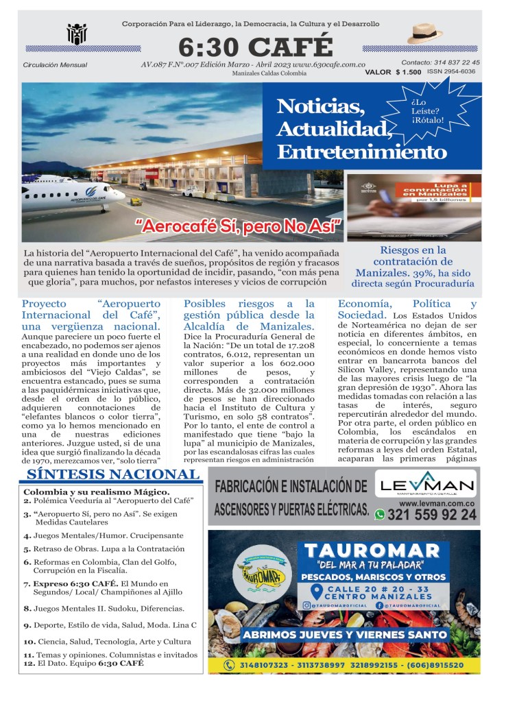 AUDIOVISUALES, CULTURA, DEPORTES, ECONOMÍA, EDICIONES, EDUCACIÓN, CIENCIA Y TECNOLOGÍA, ENTRETENIMIENTO, INTERNACIONAL, JUDICIAL, LOCAL, NACIONAL, NUESTRA HISTORIA, OPINIÓN, PLANETA TIERRA, POLÍTICA 6:30 CAFÉ, edición marzo – abril 2023 Fecha: 7 de abril de 2023Autor/a: 630 CAFÉ 0 Comentarios 6-30-cafe-marzo-abril-2023Descarga Comparte esto: Haz clic para compartir en WhatsApp (Se abre en una ventana nueva) WhatsApp Haz clic para compartir en Facebook (Se abre en una ventana nueva) Facebook Haz clic para compartir en X (Se abre en una ventana nueva) X Haz clic para enviar un enlace por correo electrónico a un amigo (Se abre en una ventana nueva) Correo electrónico Haz clic para compartir en Telegram (Se abre en una ventana nueva) Telegram Me gusta Cargando... Relacionado