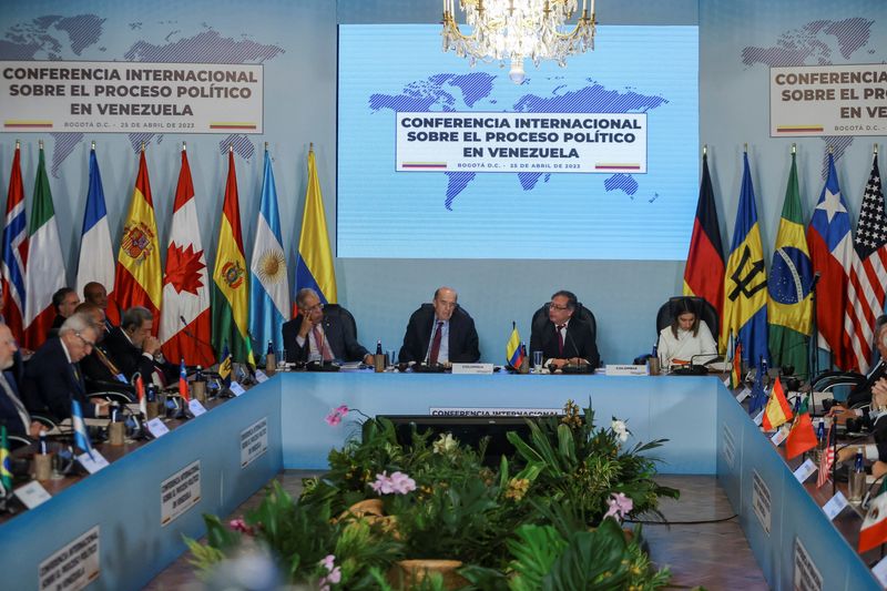 La Conferencia internacional sobre el proceso político en Venezuela concluyó este martes en Bogotá con una declaración en la que los países participantes.Los integrantes coinciden en la necesidad de hacer un cronograma para elecciones libres y un levantamiento de las sanciones.El canciller colombiano, Álvaro Leyva, informó que los 18 países asistentes a la reunión internacional coincidieron en la “necesidad de establecer un cronograma electoral.El objetivo es que se permitan elecciones libres, transparentes y con plenas garantías para todos los actores venezolanos”.Se espera “hacer seguimiento a los desarrollos de lo alcanzado” en esta conferencia, convocada por el presidente colombiano, Gustavo Petro, para revitalizar los diálogos en México, atascados desde el pasado noviembre.En ese sentido, la declaración menciona en su segundo punto “que los pasos acordados a satisfacción de las partes vayan en paralelo con el levantamiento de las distintas sanciones”.No se hizo referencia a las económicas que pesan sobre la población o a algunas personales sobre representantes del chavismo.También hay una postura común de los participantes sobre “que la continuación del proceso de negociación facilitado por el Reino de Noruega que ha tenido lugar en México sea acompañada con la aceleración de la implementación del fondo fiduciario único para la inversión social en Venezuela”, informó Leyva.