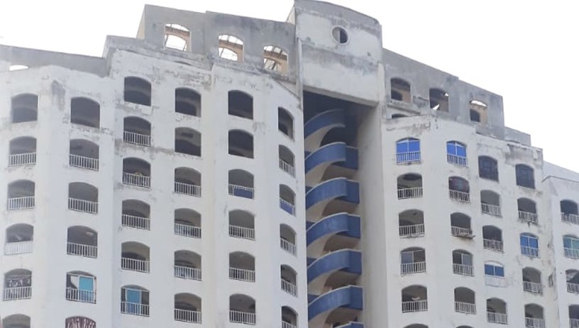 Según la administradora Parra, alrededor del año 2002 el edificio fue embargado por una supuesta estafa de los primeros constructores a los inversionistas, luego entró en innumerables vericuetos legales y nunca se pudo terminar.