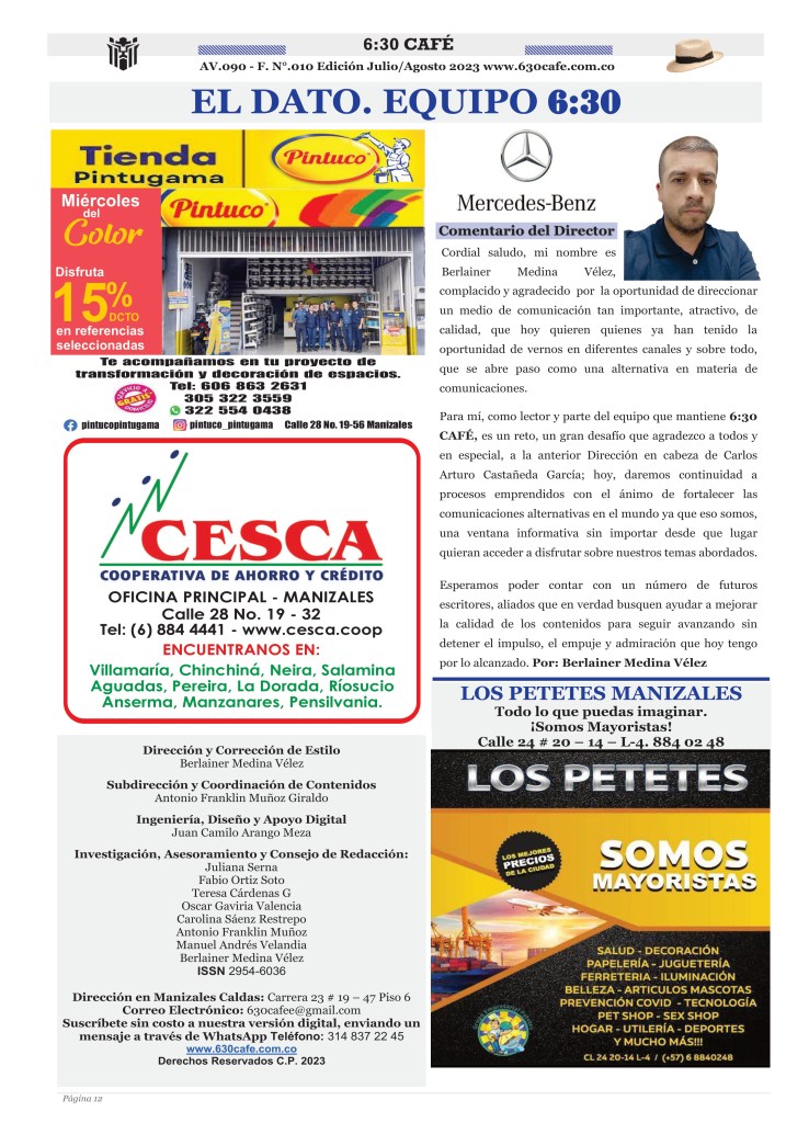 AUDIOVISUALES, AUDIOVISUALES 6:30 CAFÉ Y OTROS, EDICIONES, INTERNACIONAL, NACIONAL Edición 6.30 CAFÉ Julio – Agosto 2023 Fecha: 19 de agosto de 2023Autor/a: 630 CAFÉ 0 Comentarios 630-cafe-julio-agosto-2023Descarga Comparte esto: Haz clic para compartir en WhatsApp (Se abre en una ventana nueva) WhatsApp Haz clic para compartir en Facebook (Se abre en una ventana nueva) Facebook Haz clic para compartir en X (Se abre en una ventana nueva) X Haz clic para enviar un enlace por correo electrónico a un amigo (Se abre en una ventana nueva) Correo electrónico Haz clic para compartir en Telegram (Se abre en una ventana nueva) Telegram Me gusta Cargando... Relacionado