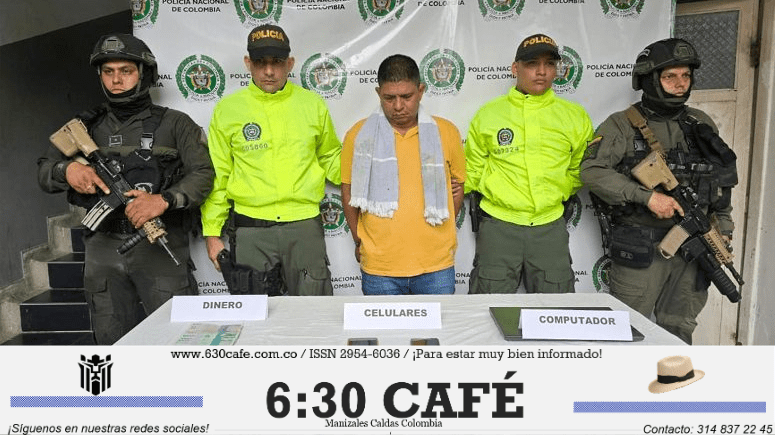 ‘Pablo’ fue capturado por la Dijin de la Policía Nacional en Granada (Meta). En su poder fueron encontrados dos celulares, varias sim card, un computador y una memoria USB cuya información se cree puede ser relevante para las investigaciones que adelanta la Fiscalía. Además, se incautaron 10 millones de pesos con fines de comiso.