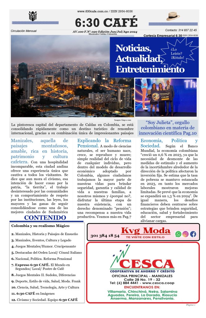 Inicialmente, manifestar que nos encontramos muy orgullosos por el posicionamiento y reconocimiento que nos da día tras día, toda nuestra familia 6:30CAFÉ, al apoyar este medio de comunicación independiente, alternativo, pero con fines esenciales, como lo es el fomento de la cultura general y herramientas de empoderamiento ciudadano en nuestra sociedad; esto, a través de contenidos que son de análisis para la vida.