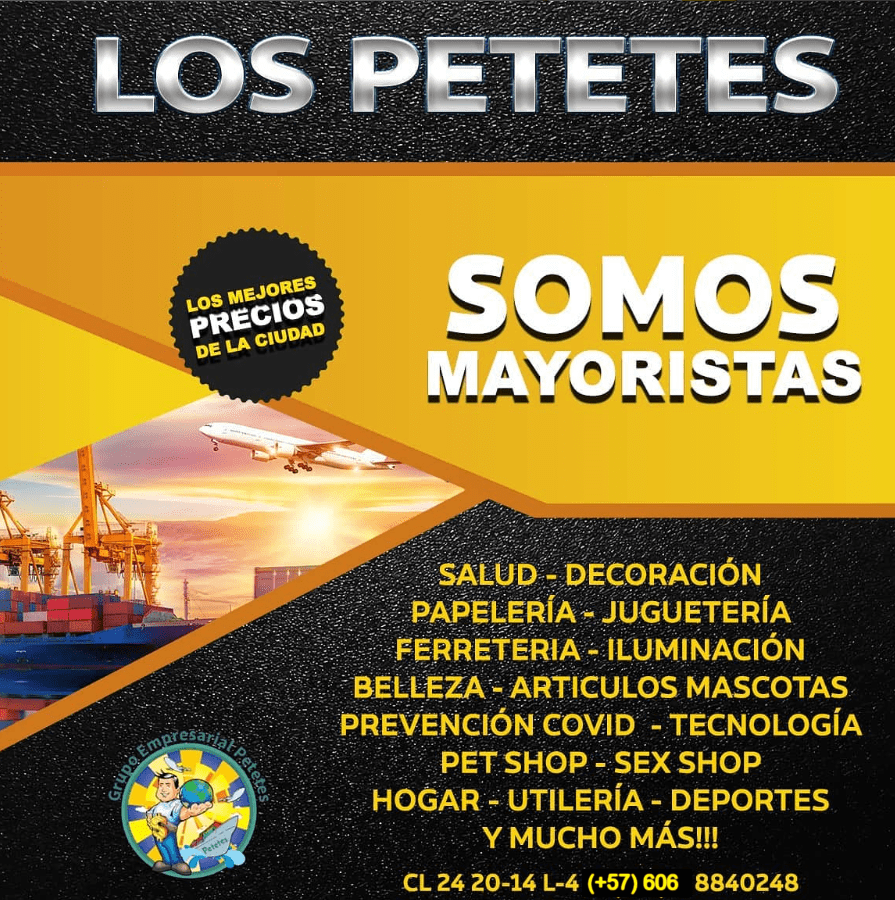 Grupo Empresarial Los Petetes. Los mejores precios de la ciudad. Somos Mayoristas. Todo en decoración, papelería, juguetería, ferretería, iluminación, belleza, artículos para mascotas, prevención COVID, tecnología, Pet Shop, sex shop, hogar, utilería, deportes y mucho más. Calle 24 # 20 – 14, local 4. teléfono: (+57) 606 884 02 48. Los Petetes Manizales. #petetes #lospetetes #petetesmanizales #cacharrería #ferretería #ferreteríamanizales #insumosmanizales #empresasmanizales
