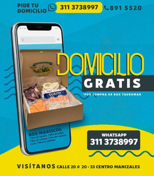 LOCAL, NACIONAL TAUROMAR. Pescados y Mariscos TAUROMAR. Calle 20 # 20 - 33 TEL: 311 373 89 97 Fecha: 5 de marzo de 2025Autor/a: 630 CAFÉ 0 Comentarios Pide tu domicilio al 311 373 89 97 o al 891 55 20. Visita nuestro punto de venta en la calle 20 # 20 – 33 en el centro de Manizales. Pescados y mariscos TAUROMAR. Comparte esto: Haz clic para compartir en WhatsApp (Se abre en una ventana nueva) WhatsApp Haz clic para compartir en Facebook (Se abre en una ventana nueva) Facebook Haz clic para compartir en X (Se abre en una ventana nueva) X Haz clic para enviar un enlace por correo electrónico a un amigo (Se abre en una ventana nueva) Correo electrónico Haz clic para compartir en Telegram (Se abre en una ventana nueva) Telegram Me gusta Cargando... Relacionado
