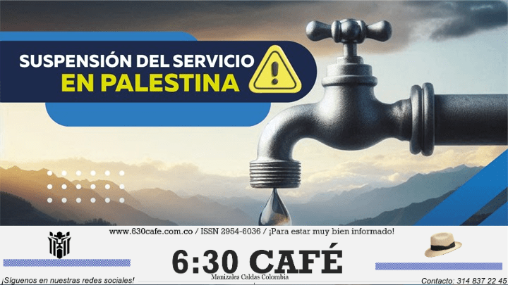 Se recomienda a la población del municipio de Palestina Caldas, residente en los barrios Uribe Uribe y Pablo Valdés, que se preparen para la suspensión del servicio de agua mañana jueves 05 de junio 2025, entre las 10:00am y la 01:00pm (aproximadamente, ya que se hará reposición en redes de acueducto.