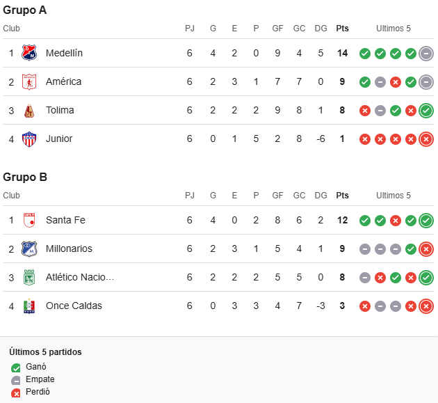 Fechas de la final de la liga colombiana y resultado cuadrangulares