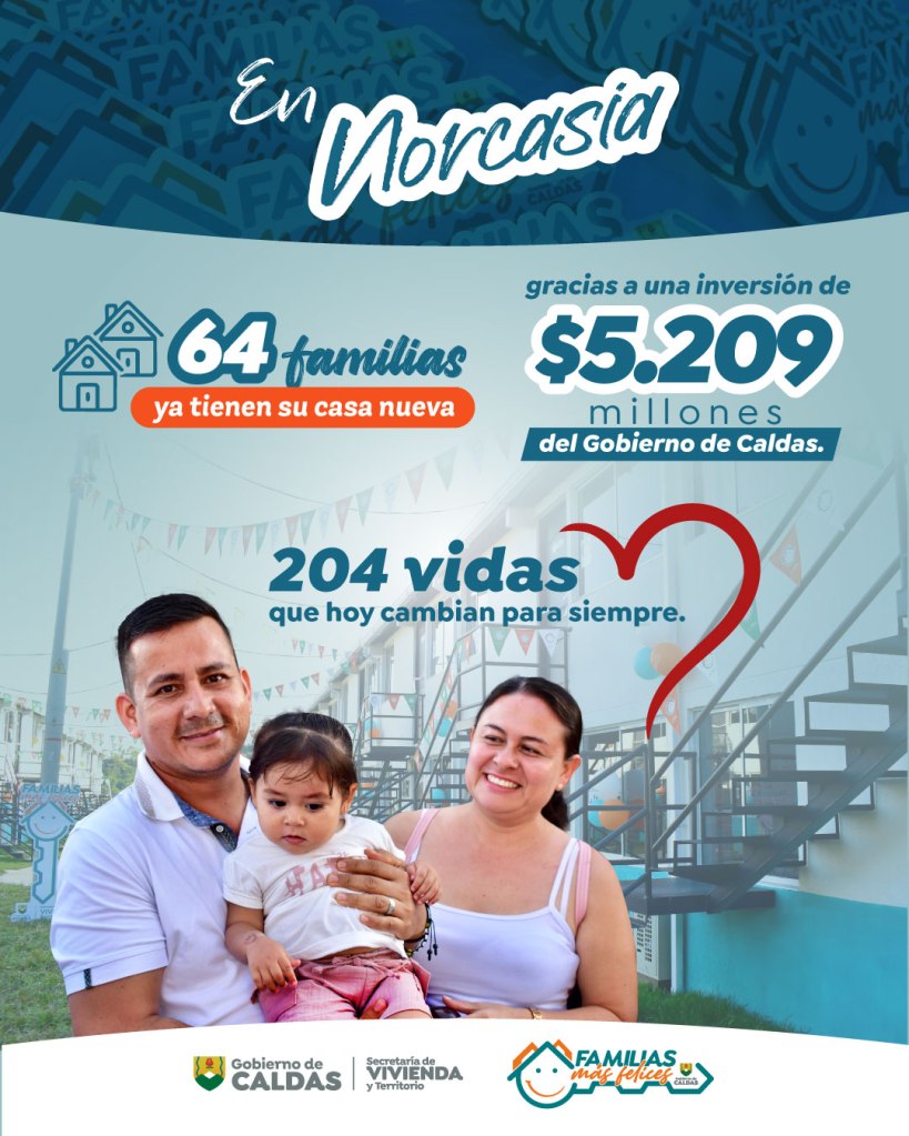 Con una inversión superior a los $5.200 millones de pesos, el Gobierno de Caldas, a través de la Secretaría de Vivienda y Territorio, entregó 64 viviendas nuevas en la zona urbana del municipio de Norcasia, beneficiando a igual número de familias en condición de vulnerabilidad y quienes ven hecho realidad el sueño de tener un hogar propio.