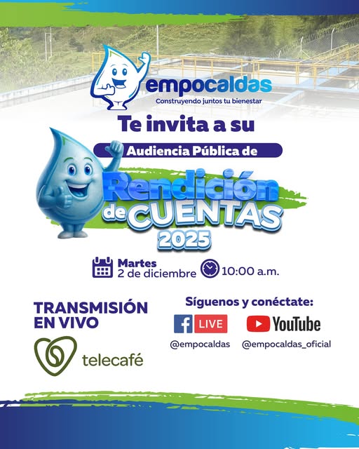 Empocaldas invita a su Audiencia Pública de Rendición de Cuentas 2025, este Martes 2 de diciembre a las 10:00 am en su transmisión en vivo por el canal Telecafé.