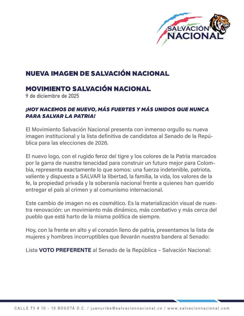 Salvación Nacional renueva su imagen y fortalece su compromiso con el país en alianza con Abelardo De La Espriella: carácter, convicción y defensa sin concesiones de la legalidad, la libertad y la nación. No es solo un cambio de imagen. Es una declaración de principios.